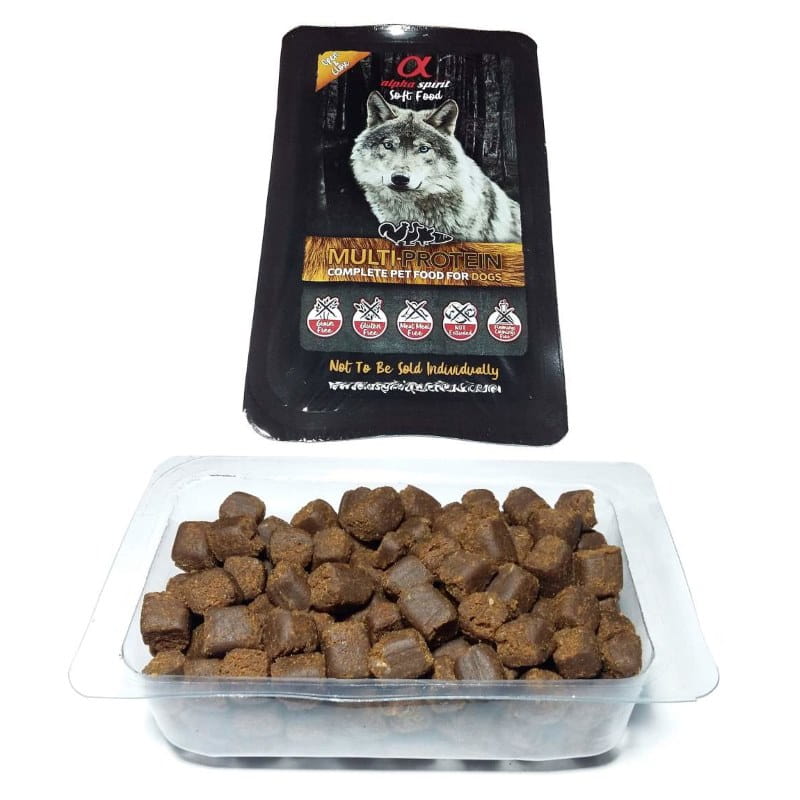 Alpha Spirit Multiprotein to karma półwilgotna (200g), bogata w łatwo przyswajalne białka wzmacniające mięśnie i kości. Produkt jest w 100% naturalny, pakowany w pojedyncze szczelnie zamknięte tacki: