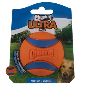 Chuckit Ultra Ball (M) to wytrzymała piłka do aportowania. Ultra Ball jest sprężysta, odbija się wyżej od innych piłek, unosi się na wodzie, wykonana z naturalnej gumy. Flagowa piłka marki Chuckit!