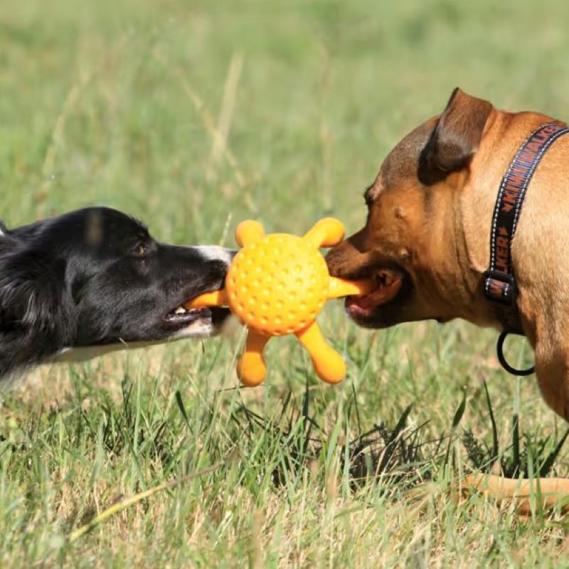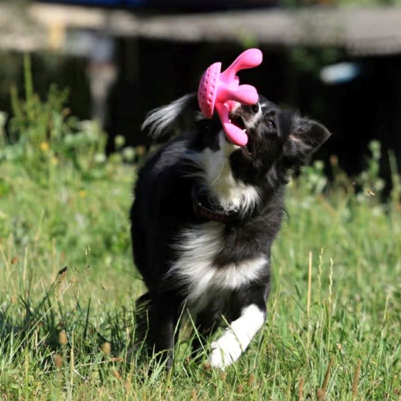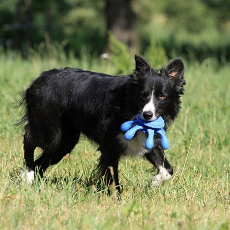Kiwi Walker Let's Play Octopus MAXI to interaktywna zabawka dla psa, która łączy w sobie trwałość, funkcjonalność i ogromną radość z zabawy. Jej dynamiczny kształt i intensywny kolor natychmiast przyciągają uwagę psa, zachęcając do aktywności. Ośmiornica wykonana jest z wytrzymałej pianki TPR, która jest odporna na gryzienie, a przy tym miękka i aksamitna w dotyku. Dzięki specjalnej konstrukcji z tłoczeniami i wypustkami zabawka delikatnie masuje zęby i dziąsła podczas użytkowania, wspierając zdrowie jamy ustnej. Idealnie sprawdza się zarówno jako aport, szarpak, masażer, jak i wodna zabawka – unosi się na powierzchni i nie tonie. Dzięki różnym rozmiarom, doskonale dopasowuje się do potrzeb małych i dużych psów.