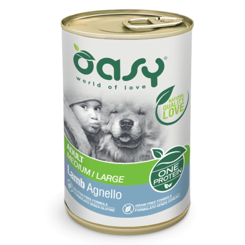 Oasy One Protein to wysoce przyswajalna mokra karma monoproteinowa, zapewniająca maksymalny smak i całkowitą przyswajalność składników odżywczych, szczególnie dedykowana dla psów z nietolerancją pokarmową, wrażliwością jelit oraz skóry. Zawiera aż 94% świeżej jagnięciny z ziemniakami. Produkty Oasy One Protein Adult zostały opracowane dla zaspokojenia potrzeb żywieniowych dorosłych psów.