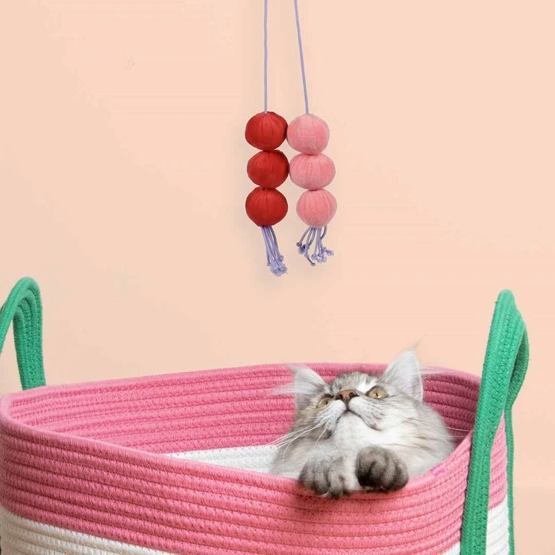 COOCKOO DIZZY DANGLE - elastyczna i angażująca zabawka dla kota, stworzona z myślą o codziennej aktywności i stymulacji kota. Wyposażona w miękkie, lekkie kulki oraz regulowany pasek na rzep, pozwala na łatwe przymocowanie do drapaka, klamki drzwi czy mebli, a także na prowadzenie interaktywnej zabawy trzymanej w dłoni. Wbudowane dzwoneczki wydają przyjemny dźwięk przy każdym ruchu, pobudzając instynkty łowieckie i zachęcając kota do skakania, łapania i polowania. To idealny sposób na zapewnienie kotu rozrywki, ruchu i urozmaicenia jego codziennej rutyny.