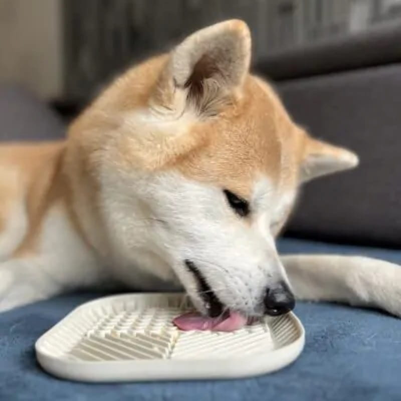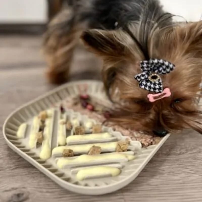 Mata do wylizywania spowalniająca jedzenie. Wykonana z miękkiego tworzywa, charakteryzuje się dużą przyczepnością do podłoża, przez co zabezpiecza miskę przed przesuwaniem się. Wysoki rant dookoła maty chroni przed rozlewaniem płynnych przekąsek oraz wysypywaniem jedzenia. Działa uspokajająco i relaksująco.