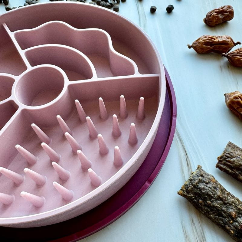 Fiboo Slow Fiboowl miska spowalniająca z wypustkami, która ogranicza łapczywe jedzenie i wspiera zdrowe trawienie. Wykonana z ekologicznych materiałów, łączy praktyczność z estetyką.