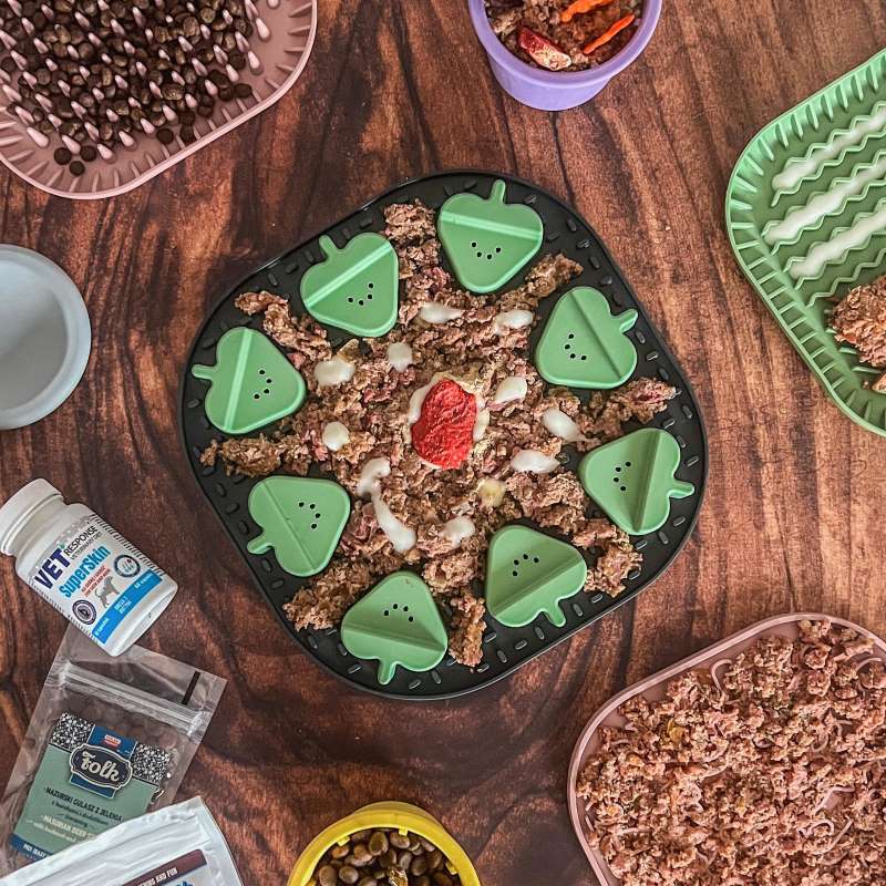 Fiboo Snoopy to mata lizakowa spowalniająca jedzenie. Wykonana z miękkiego tworzywa, które charakteryzuje się dużą przyczepnością do podłoża, przez co zabezpiecza miskę przed przesuwaniem się. Rant dookoła maty chroni przed rozlewaniem płynnych przekąsek oraz wysypywaniem jedzenia. Idealna do zabawy poprzez lizanie i wydobywanie jedzenia z zakamarków maty. Działa uspokajająco i relaksująco.