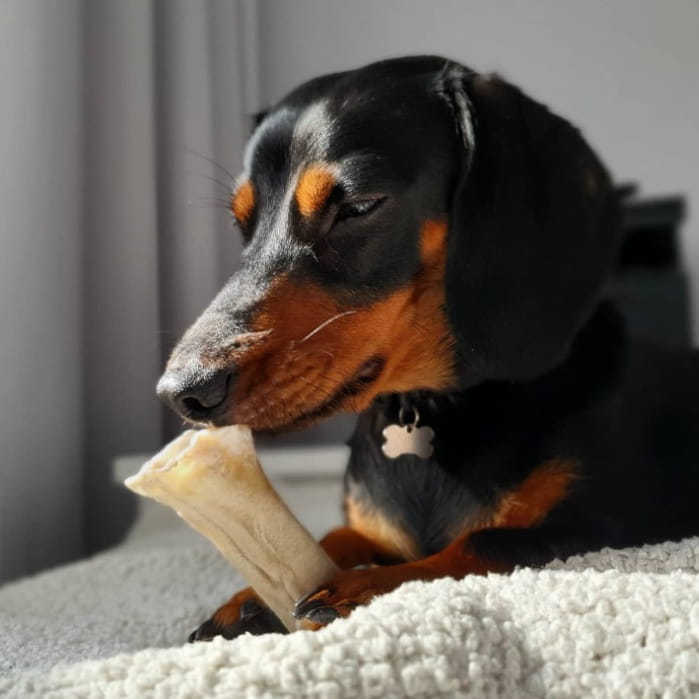Skóra użyta do produkcji naszych kości jest w 100% naturalna, niebarwiona. Poddawana jedynie 3 tygodniowemu procesowi suszenia w niskiej temperaturze, co pozwala na zachowanie cennych właściwości odżywczych wszystkich komponentów. Spoiwem kości funkcyjnych jest kolagen naturalnie występujący w skórze. Struktura kości w korzystny sposób wpływa na zęby oraz dziąsła psa. Podczas podgryzania, ten twardy gryzak czyści zęby usuwając z nich resztki jedzenia, pozostawiając je gładkie oraz zapobiegając ich zżółknieniu.