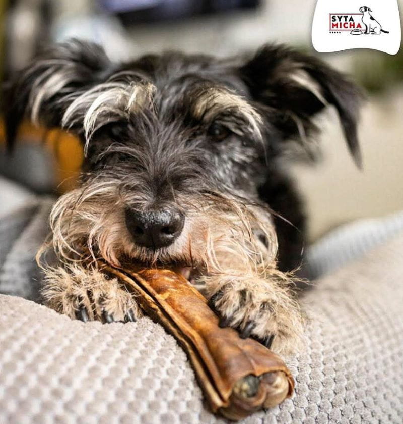 Kość do żucia Syta Micha to pyszne i zdrowe smakołyki, w których połączenie elementów pochodzenia zwierzęcego i roślinnego stanowią odżywczą alternatywą dla popularnych gryzaków. Formuła hipoalergiczna przygotowana na końskiej skórze: