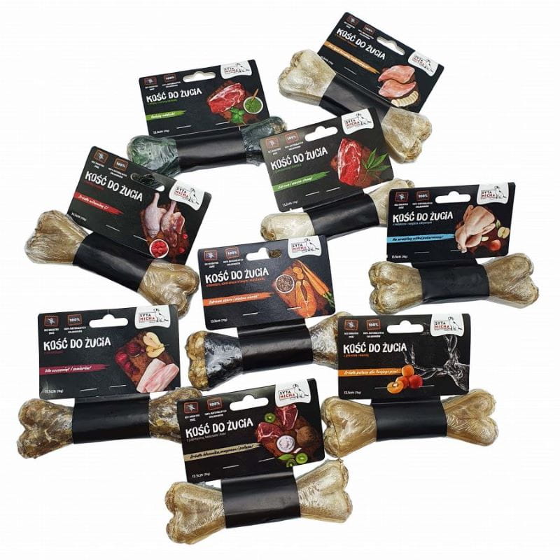 Rozmiar kości 13,5 cm jest bardzo uniwersalny, pies każdego gabarytu będzie mógł czerpać radość z gryzienia kości funkcyjnych. Całkowicie bezpieczne dla psa, nie kruszą się i nie zawierają ostrych elementów, które mogłyby poranić dziąsła podczas gryzienia. Pyszne i zdrowe smakołyki, w których połączenie elementów pochodzenia zwierzęcego i roślinnego stanowią odżywczą alternatywą dla popularnych gryzaków.
