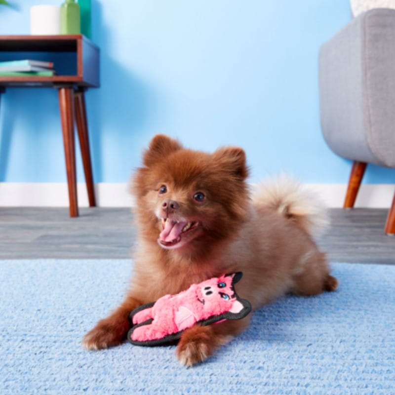 Outward Hound Durablez to idealne połączenie miękkiego pluszu i wyjątkowej trwałości, stworzone z myślą o psach, które uwielbiają zarówno przytulanki, jak i intensywną zabawę. Choć wyglądają jak zwykłe, urocze pluszaki, ich konstrukcja kryje solidne wnętrze wykonane w technologii K-9 TUFF GUARD – z mocnymi przeszyciami i dodatkową warstwą wytrzymałego materiału wewnętrznego. Dzięki temu Durablez są odporne na szarpanie, ciągnięcie i inne szalone psie wybryki, jednocześnie pozostając przyjemnymi w dotyku i bezpiecznymi do przytulania po zabawie. Zabawki nie zawierają wypełnienia, co eliminuje bałagan, a wbudowane piszczałki zapewniają dodatkową radość podczas zabawy. Wbudowana piszczałka czyni ją jeszcze ciekawszą dla psa.
