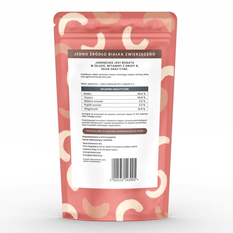Skład: jagnięcina, mięso mięśniowe 95%, tapioka 5%