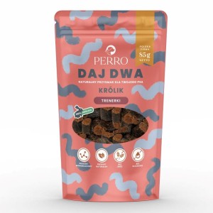 PERRO DAJ DWA Trenerki to naturalne, suszone przysmaki, które podkręcą entuzjazm treningowy czworonożnych przyjaciół. Suszone mięso, podzielone na drobne kosteczki to doskonały sposób nagradzania, idealne do mat węchowych i zabawek edukacyjnych, a także wartościowe urozmaicenie psiej diety.
