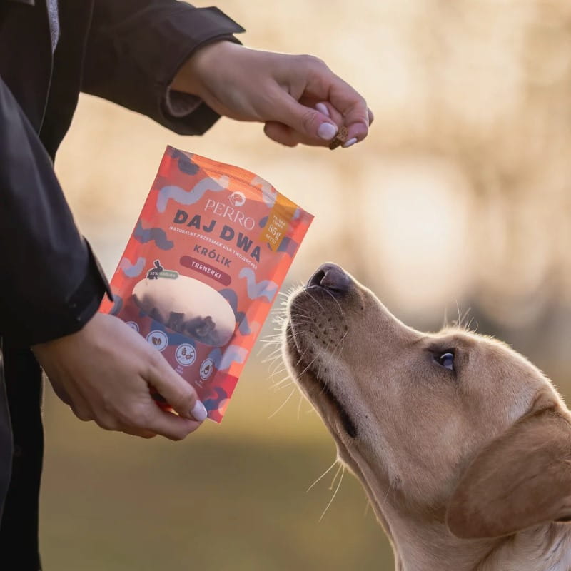 PERRO DAJ DWA Trenerki to naturalne, suszone przysmaki, które podkręcą entuzjazm treningowy czworonożnych przyjaciół.