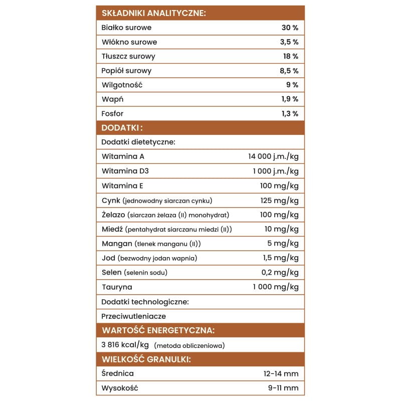 Wielkość granulki: średnica (12-14mm), wysokość (9-11mm)
