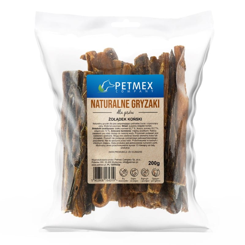 Petmex koński żołądek – naturalne wsparcie dla trawienia i zdrowia psa. Doskonałe uzupełnienie codziennej diety psa, a jego wyjątkowy smak i aromat przypadną do gustu nawet najbardziej wybrednym czworonogom.