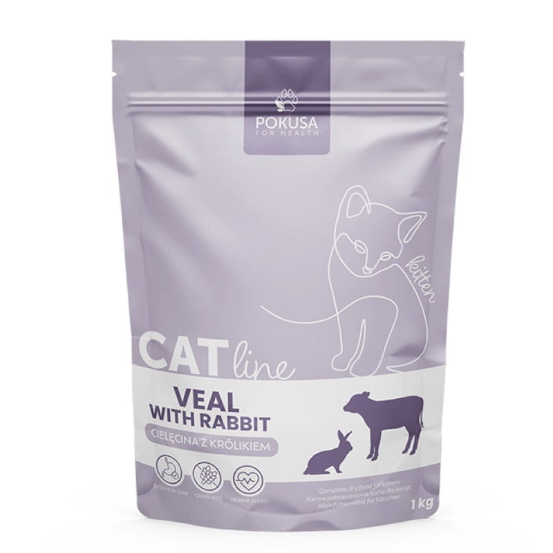 Pokusa CatLine karma sucha dla kociąt 1kg Cielęcina z Królikiem
