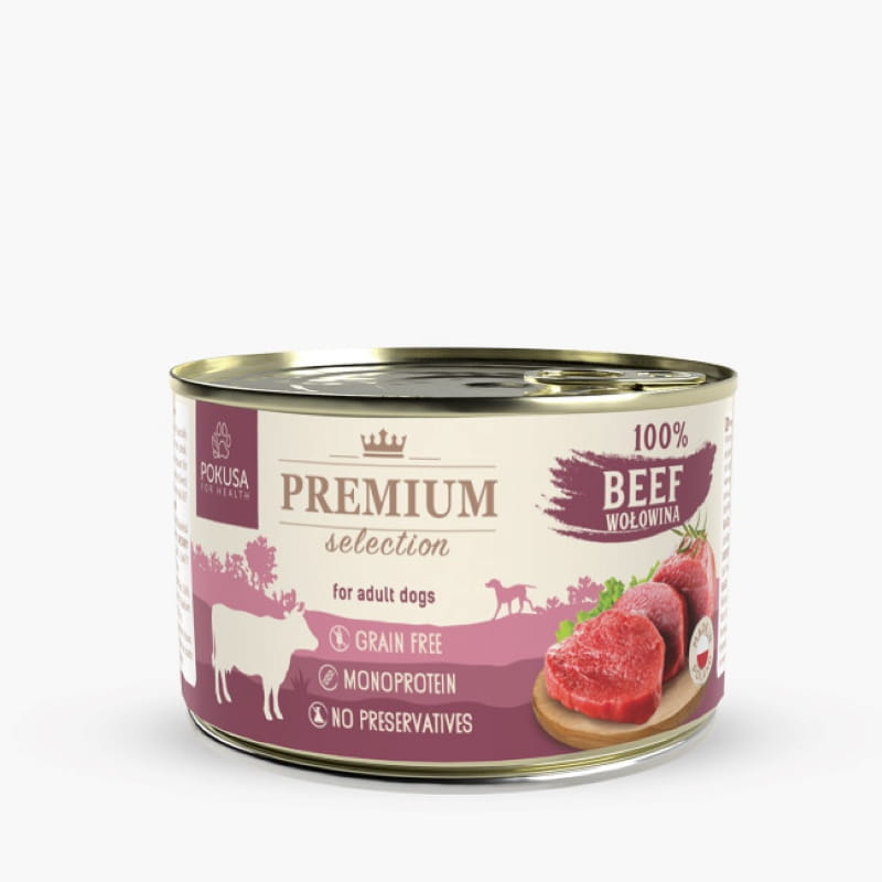 Pokusa Premium Selection Wołowina - monoproteinowa, bezzbożowa karma mokra dla psów 100% wołowiny.