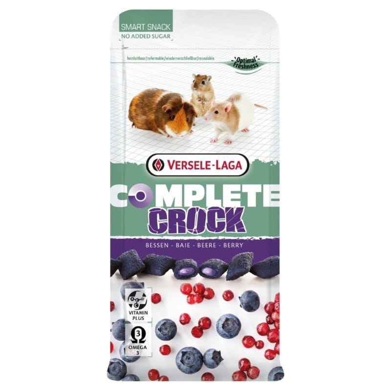 Versele-Laga Complete Crock Berry to smakowita i zdrowa przekąska dla królików oraz różnych gatunków gryzoni. Chrupiąca powłoka wspiera naturalny instynkt gryzienia, a miękkie jagodowe wnętrze wzbogacone witaminami i kwasami Omega-3 korzystnie wpływa na zdrowie i kondycję zwierzaka.