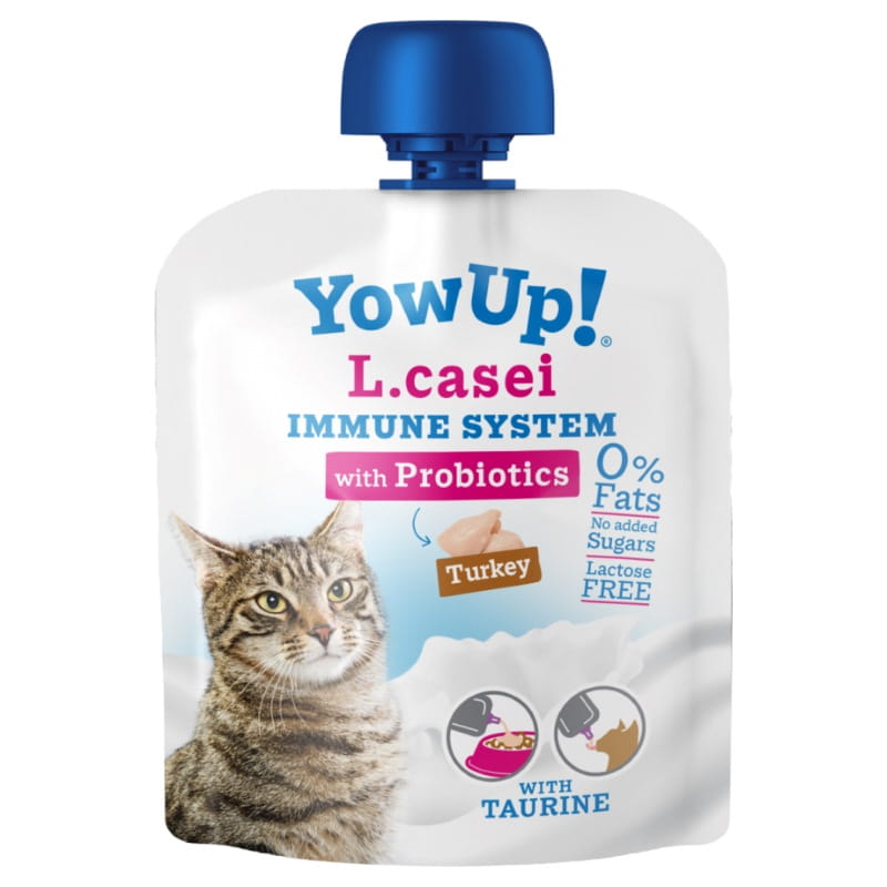 Yow Up! L.Casei Jogurt dla kota z indykiem to lekkostrawna przekąska bez laktozy, tłuszczu i cukru, wzbogacona o probiotyki i witaminy. Idealna do podania bezpośrednio, jako topper lub w formie lodów.